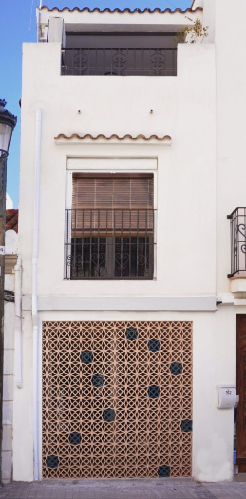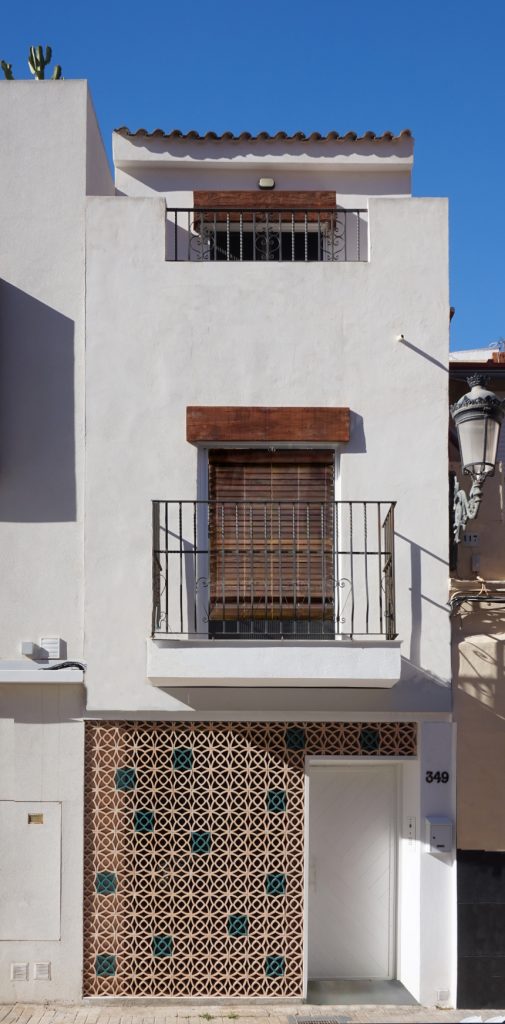 Los acabados buscan crear un conjunto sencillo donde destaquen solo algunos elementos particulares; en fachadas, se conservan las rejerías y se renueva el acabado continuo en blanco en las plantas superiores, incorporando en la planta baja una celosía cerámica, que en conjunto con los colores y su dibujo busca un recuerdo de los elementos tradicionales del barrio, permitiendo también la entrada de luz y la privacidad en planta baja.